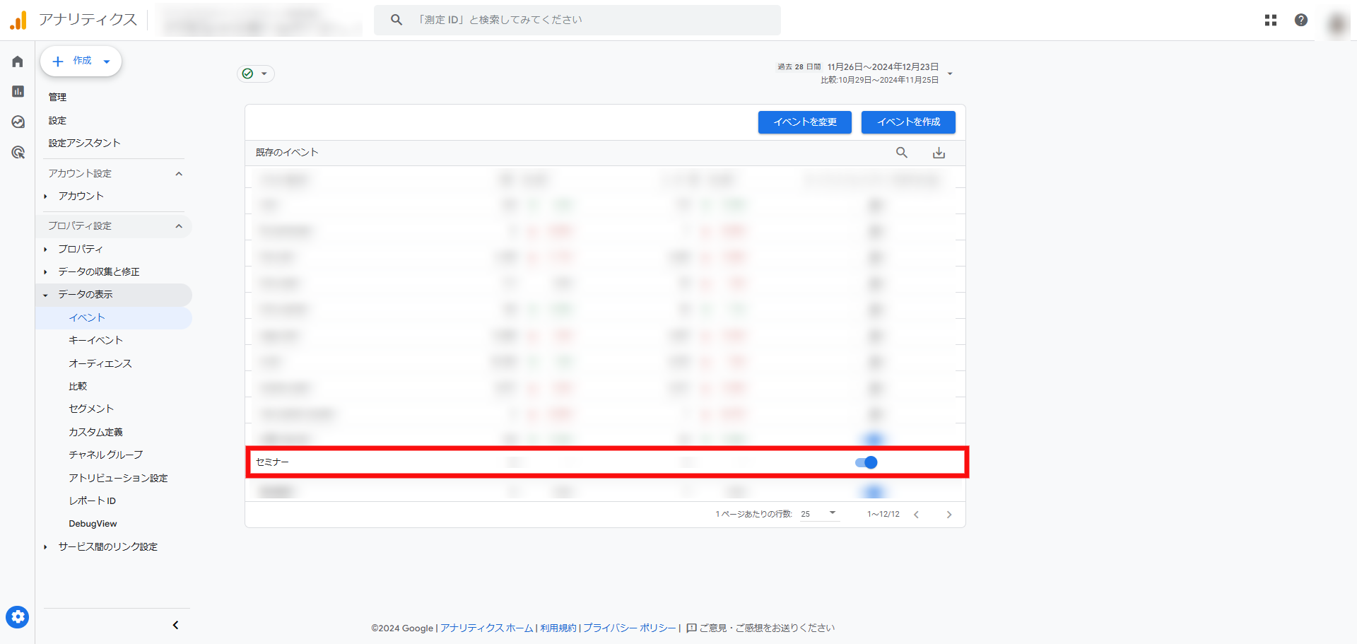 ⑦あとは、GA4のみの設定と同様にGA4のイベント設定画面で、作成したイベントが「ON」になっているかを確認する(※重要)
