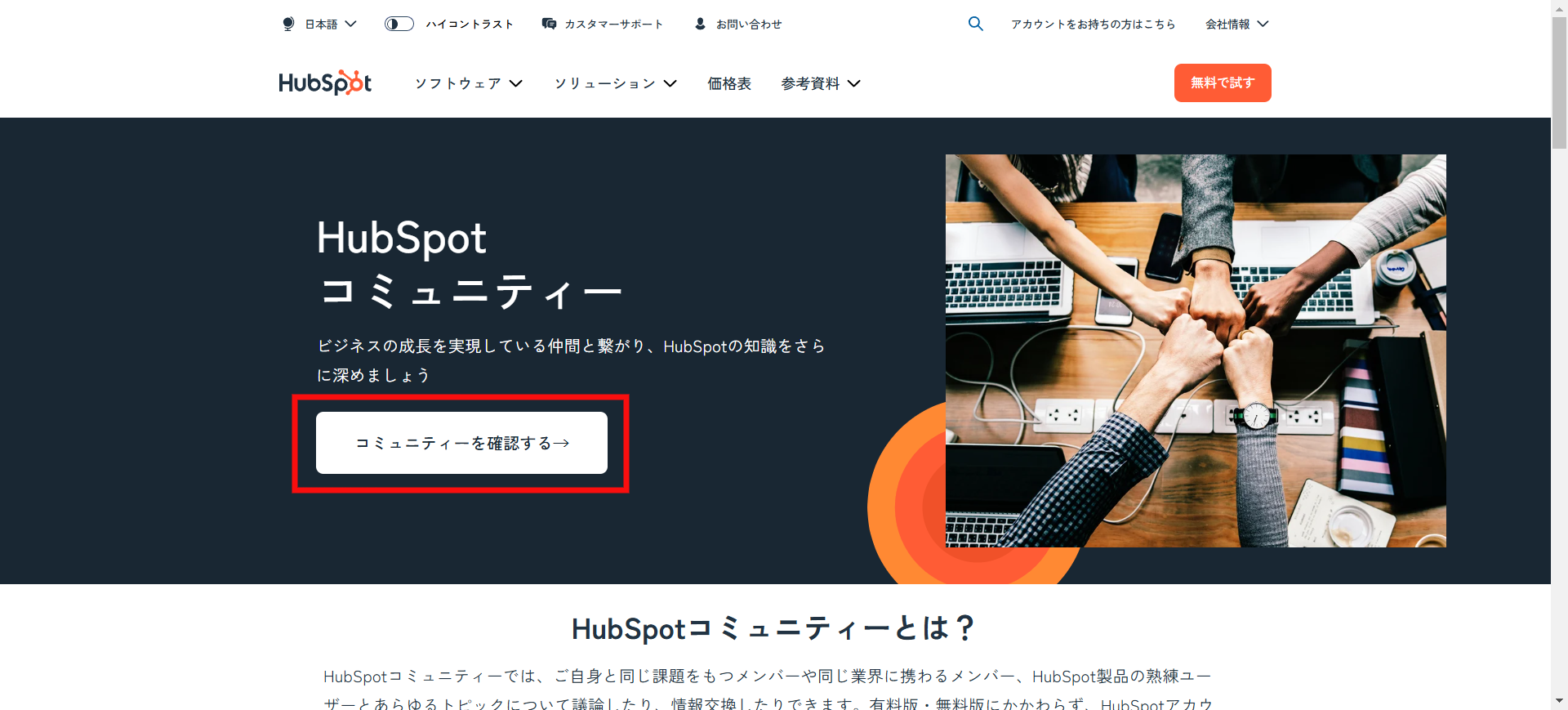 HubSpot公式サイト内の「コミュニティ」ページに登録すれば、誰でも参加可能です。