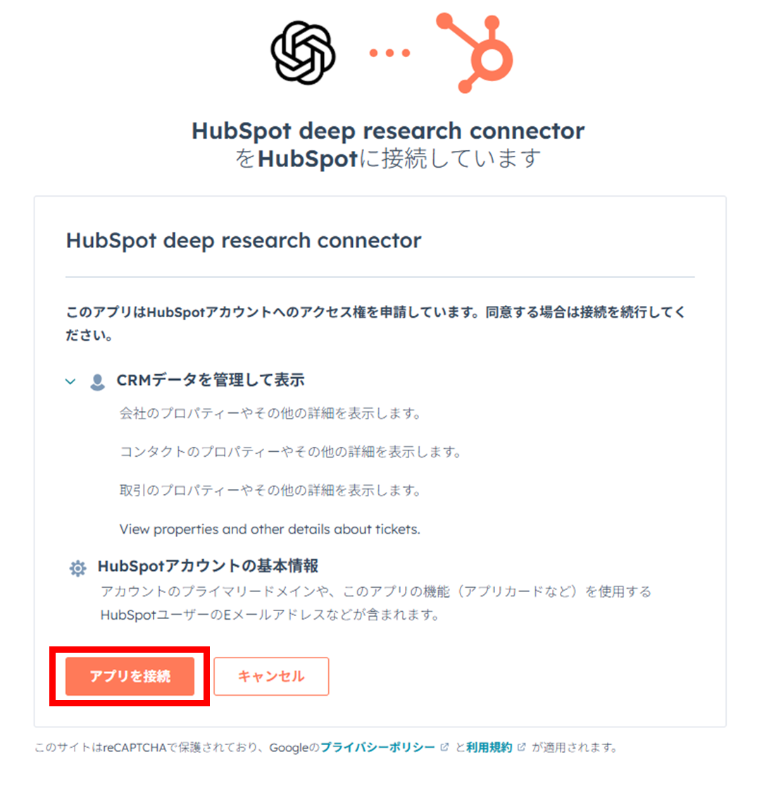 このDeep Researchコネクターを利用することで、ChatGPTとHubSpotを連携させて、HubSpot内に蓄積された顧客データを、ChatGPTで活用できるようになります。