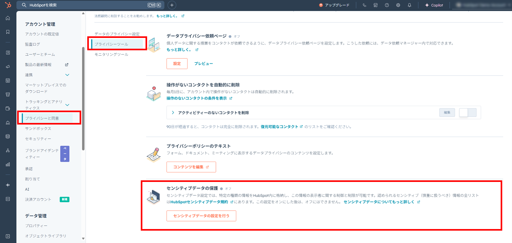 【非準拠】HubSpotのセンシティブデータ取り扱い